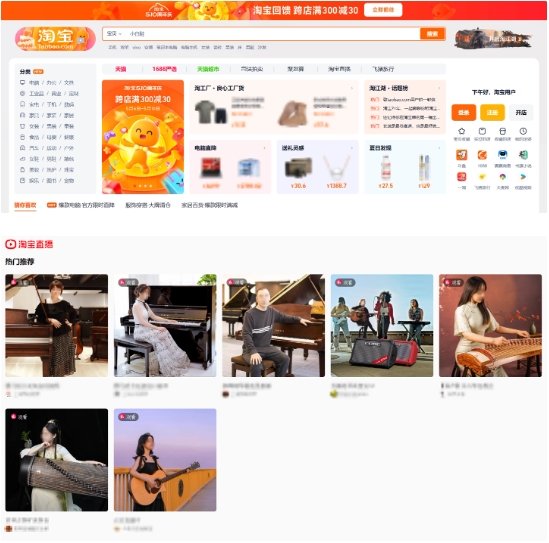 淘寶網(wǎng)頁(yè)版官方上線(xiàn)了跨店滿(mǎn)減活動(dòng),整體 UI 設計更加輕巧簡(jiǎn)潔,不過(guò)淘寶直播界面還較為簡(jiǎn)陋,只展示幾個(gè)推薦直播信息,無(wú)法自行查找。