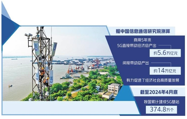 今年是5G商用的第五個(gè)年頭。5年來(lái),全國所有地市級城區、縣城城區均實(shí)現網(wǎng)絡(luò )覆蓋;從基站設備到通信芯片再到手機終端,產(chǎn)業(yè)鏈整體實(shí)力不斷增強;在工業(yè)現場(chǎng),5G機器視覺(jué)檢測將質(zhì)檢效率提升60%……據中國信息通信研究院測算,5年來(lái),5G直接帶動(dòng)經(jīng)濟總產(chǎn)出約5.6萬(wàn)億元,間接帶動(dòng)總產(chǎn)出約14萬(wàn)億元,有力促進(jìn)了經(jīng)濟社會(huì )高質(zhì)量發(fā)展。