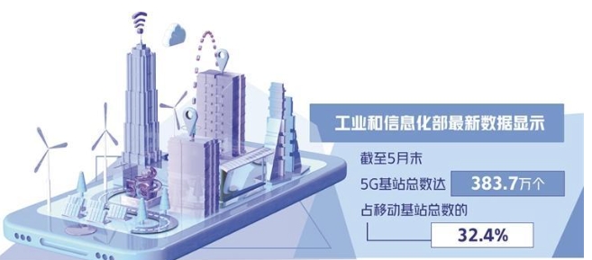 工業(yè)和信息化部最新公布的數據顯示,截至5月末,5G基站總數達383.7萬(wàn)個(gè),占移動(dòng)基站總數的32.4%;5G移動(dòng)電話(huà)用戶(hù)達9.05億戶(hù),占移動(dòng)電話(huà)用戶(hù)的51.3%。