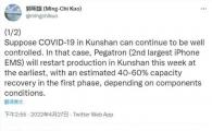 IT 之家 4 月 27 日消息,蘋(píng)果分析師郭明錤今日發(fā)推指出,假設昆山疫情形勢持續好轉,和碩昆山廠(chǎng)最早將于本周在重啟生產(chǎn)。根據零