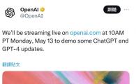 OpenAI 日前宣布,將于太平洋時(shí)間 5 月 13 日 10:00 (注:北京時(shí)間 5 月 14 日凌晨 1:00)網(wǎng)絡(luò )直播一些關(guān)于 ChatGPT 的升