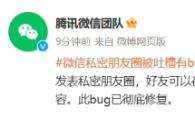 網(wǎng)絡(luò )上有人吐槽微信私密朋友圈有 bug,騰訊微信團隊發(fā)文致歉,并表示此 bug 已徹底修復?! ”附o大家帶來(lái)困擾。1 月 1 日當天
