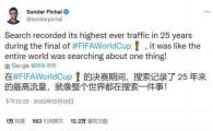 FIFA 卡塔爾世界杯決賽期間刷新了谷歌成立 25 年以來(lái)的最高流量紀錄。谷歌首席執行官桑達爾?皮查伊(Sundar Pichai)在最新推文中宣